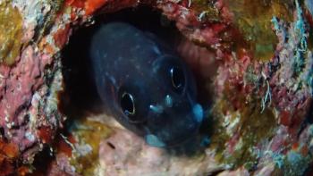 気持ちよさそうに ハタも オイランヨウジにすり寄っていました